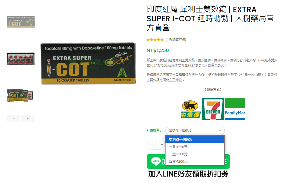 | 大樹藥局 | 40mg x 10顆 | 100mg x 10顆 | NT$1250 | ★★★★☆(4.5) |